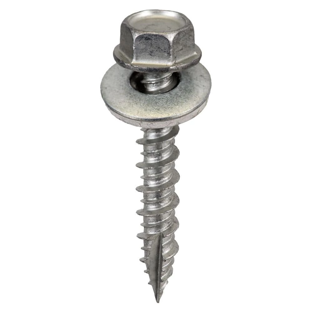 Self-tapping metal to wood screws. These screws are available in a variety of colors to match your project. They feature twin lead threads for fast drive time and hi-lo threads for increased hold. Bonded EPDM washer.