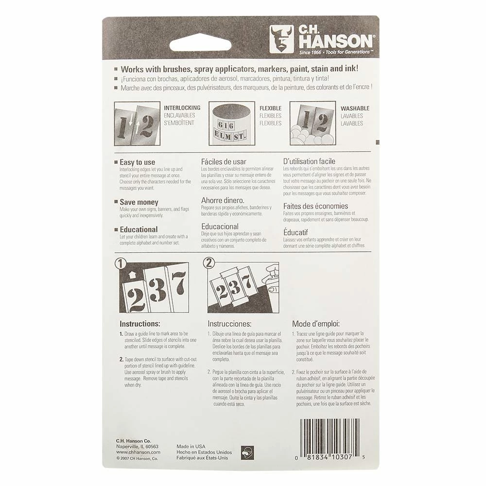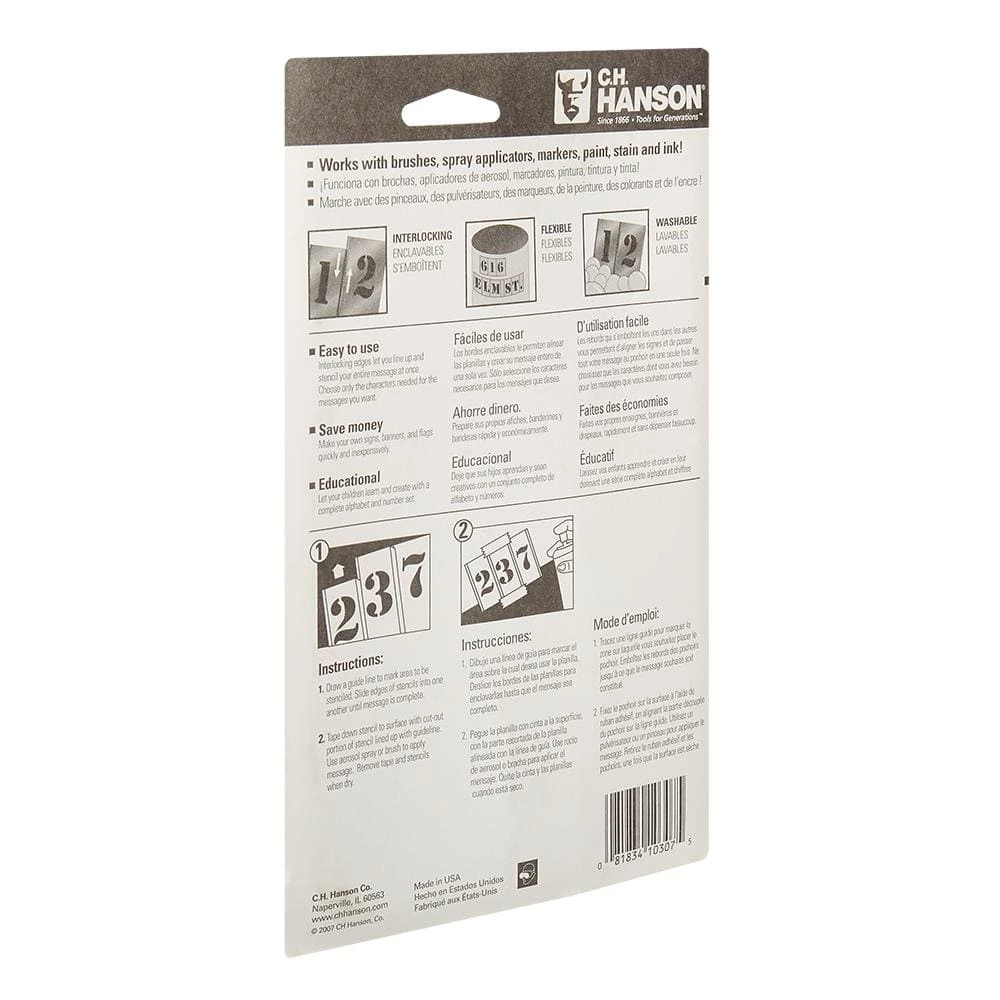 CH Hanson offers a durable brass re-usable stencil, ready to use for any of your marking needs. These stencils interlock to create different messages. Cleans easily with paint solvent.