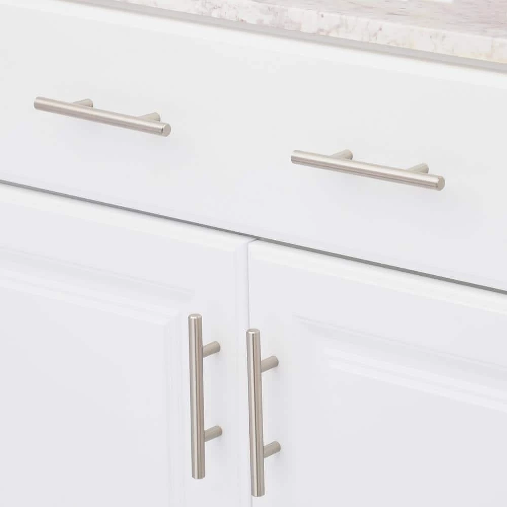 Update the looks of your kitchen cabinets with these sleek, European-styled Dynasty Hardware bar pulls. Their simple, elegant design complements traditional, transitional and contemporary decor. These cabinet pulls also work beautifully on bath storage cabinets, china cabinets and chests of drawers. Sturdy and comfortable to the grip, the solid steel pulls softly shine with a lovely satin nickel finish. Each pull features durable, 1-Piece construction and comes individually wrapped. Standard 8/32 in. x 1 in. machine screws are included for easy installation. Measuring 5-3/4 in. in length and 1-1/4 in. in height, these pulls are an ideal choice for kitchens with stainless steel appliances. Each set of cabinet hardware ships with 25 pulls per pack.