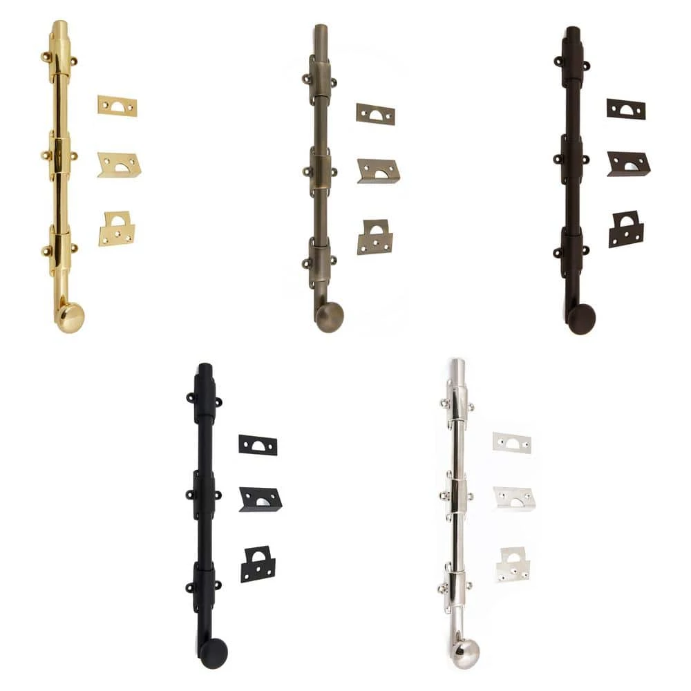Idh by St. Simons Solid Brass Heavy-Duty Surface Bolts are designed with a focus on improved home security and door decor. Being made of high quality extruded solid brass, these surface bolts do not compromise on durability. Specially designed detent ball catches eliminate surface scratches or marring when moving the bolt. With its clean classical design and premium hand finishes, idh by St. Simons solid brass surface bolts will add a touch of elegance to your entry ways. Demand Quality, Demand idh.