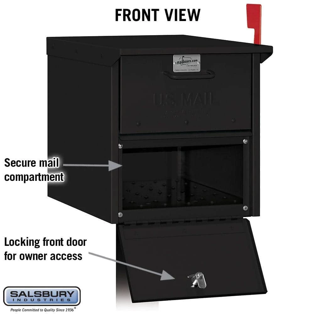 The Salsbury Industries Post-Mount Roadside Mailbox features heavy-duty aluminum construction and comes pre-assembled for easy installation. This versatile mailbox can either be wall mounted or post mounted to suit your needs. This durable mailbox has a generous size to accommodate letters, magazines and packages, and the front- and rear-access doors lock to help prevent mail theft. Approved by the U.S. Postmaster General, this mailbox includes an outgoing mail tray for added convenience.